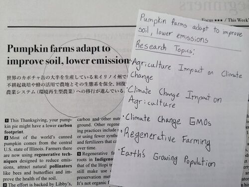 いつもテーマは担任が選ぶのだけど、どうしても得意の世界情勢&世界史系に 偏りがちだ・・・と思ったのか、今回は環境系の話。 いわゆる環境と安全性に配慮した、「再生型農業」はこれからのスタンダードに なりうるか?的なディスカッション。 リサーチ課…